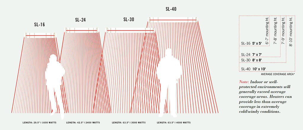 UL/CUL LISTED - All Infratech heaters are UL/CUL listed for Indoor / Outdoor use, and available in a variety of lengths and colors. Height range - Up to 10 ft. mounting height option.