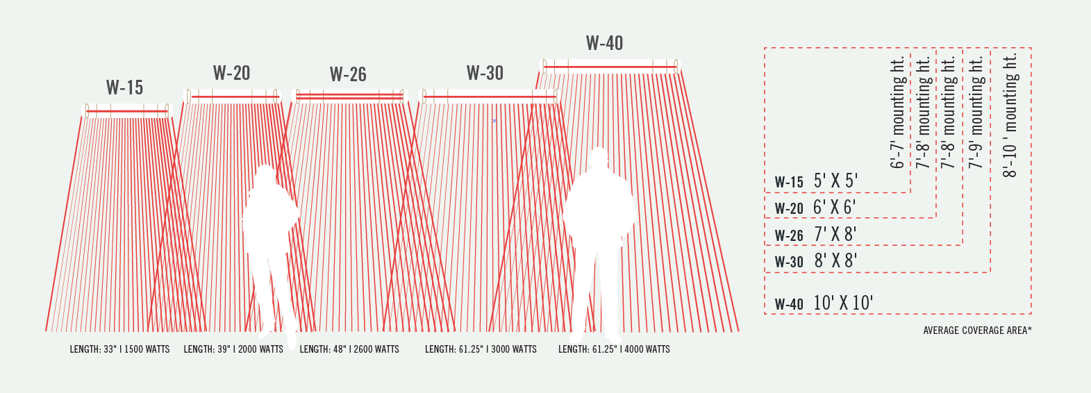 UL/CUL LISTED - All Infratech heaters are UL/CUL listed for Indoor / Outdoor use, and available in a variety of lengths and colors. Height range - 6 ft. to 10 ft. mounting height option.